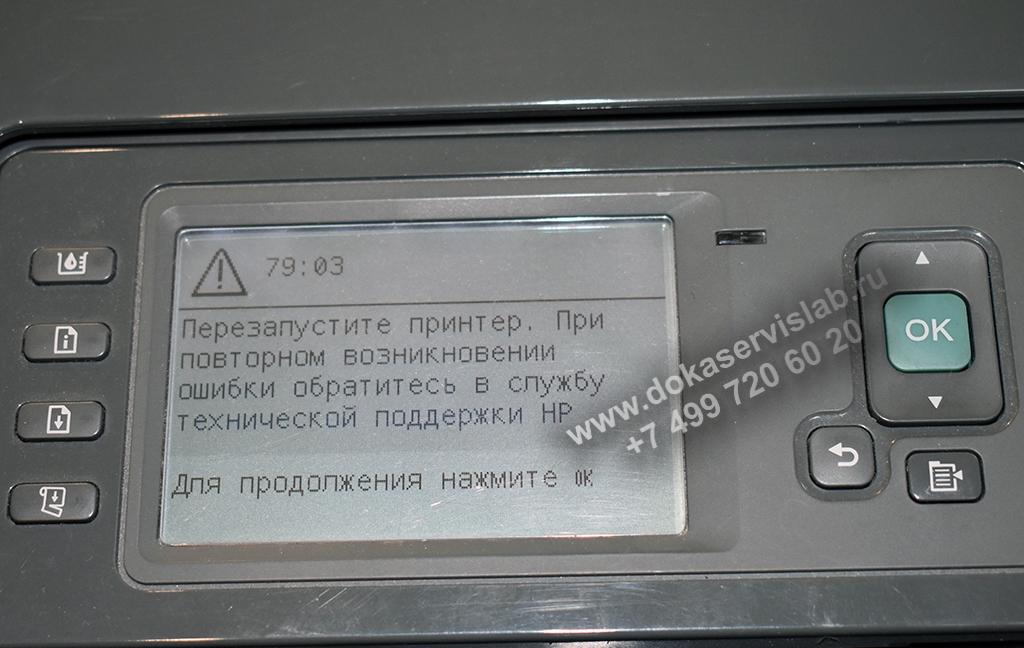 Важно: Если возникает ошибка 79:03, попробуйте перезагрузить принтер. Если ошибка повторяется, обновите микропрограмму вашего плоттера.